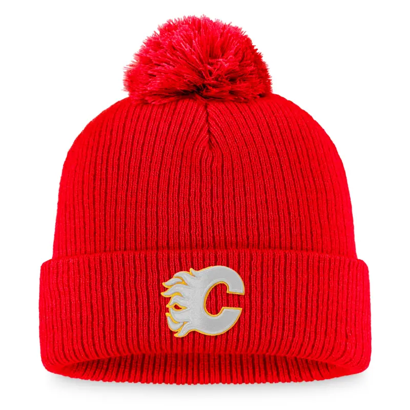 Men’s Fanatics Red Calgary Flames Core Primary Logo Cuffed Knit Hat with Pom