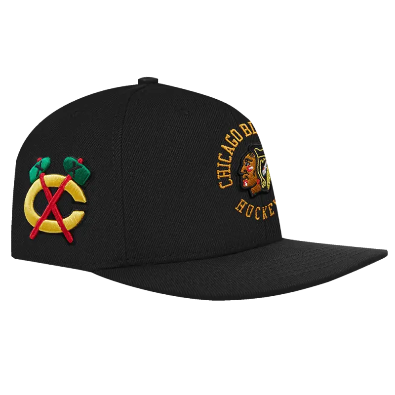 NHL CHICAGO BLACKHAWKS HYBRID SNAPBACK HAT (BLACK)