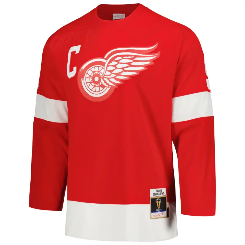 Men’s Mitchell & Ness Gordie Howe Red Detroit Red Wings Captain Patch 1960/61 Blue Line Player Jersey