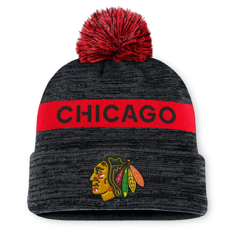 Chicago Blackhawks Authentic Pro Rink Beanie Cuff With POM