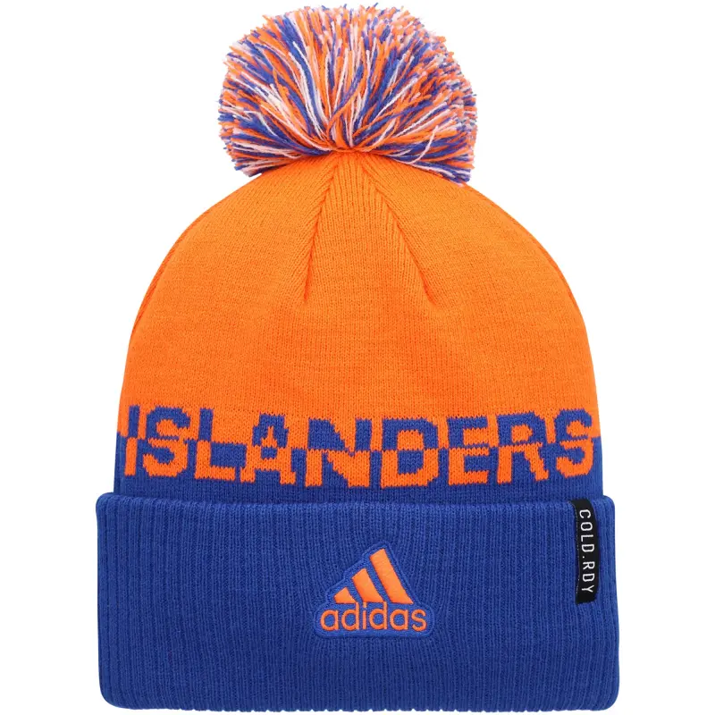 Men’s adidas Orange/Royal New York Islanders COLD.RDY Cuffed Knit Hat with Pom