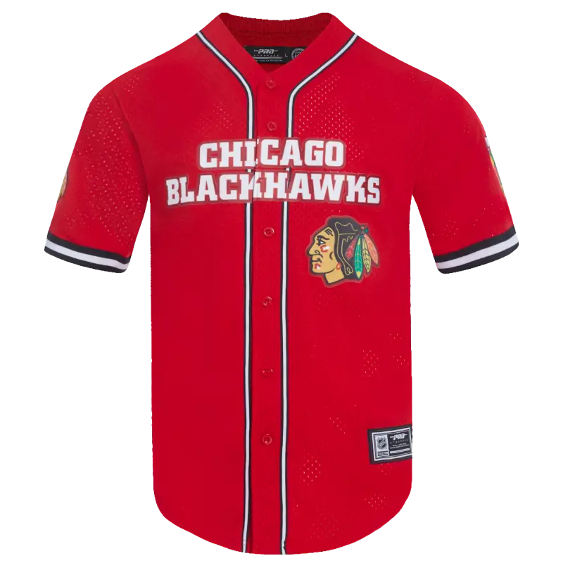 NHL CHICAGO BLACKHAWKS SCRIPT TAIL MEN’S MESH BUTTON DOWN SHIRT (RED\/BLACK)