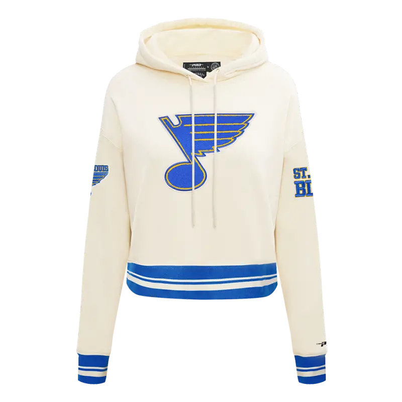 NHL ST. LOUIS BLUES RETRO CLASSIC WOMEN’S RIB CROPPED PO HOODIE (EGGSHELL\/ROYAL BLUE)