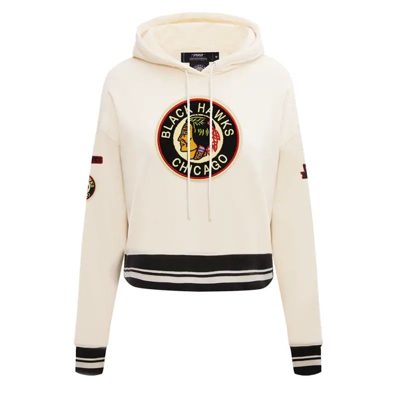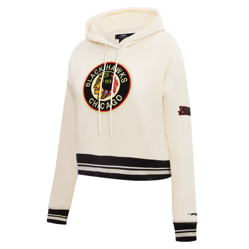 NHL CHICAGO BLACKHAWKS RETRO CLASSIC WOMEN’S RIB CROPPED PULLOVER HOODIE (EGGSHELL\/ BLACK)