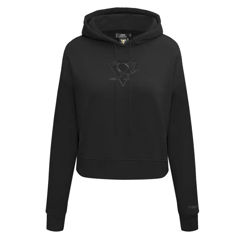 NHL PITTSBURGH PENGUINS CLASSIC WOMEN’S CROPPED PULLOVER HOODIE (BLACK)