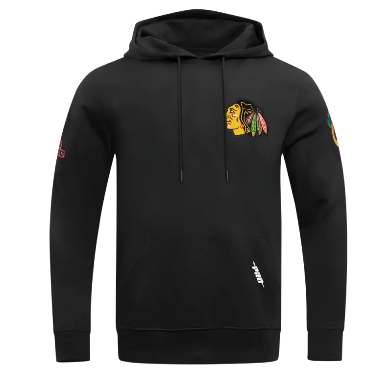 The Pro Standard Premium NHL Chicago Blackhawks Classic Chenille Men’s PO Hoodie (Black)