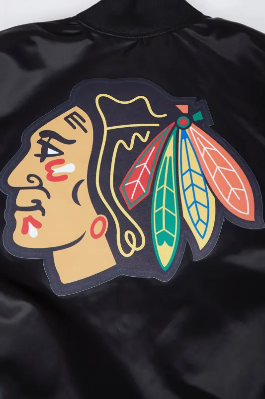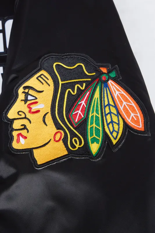 NHL CHICAGO BLACKHAWKS CLASSIC MEN’S SATIN JACKET (BLACK)