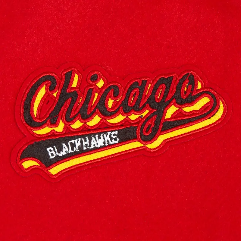 Home / Shop / Chicago Blackhawks / NHL CHICAGO BLACKHAWKS SCRIPT TAIL WOMEN’S WOOL VARSITY JACKET (RED\/BLACK)