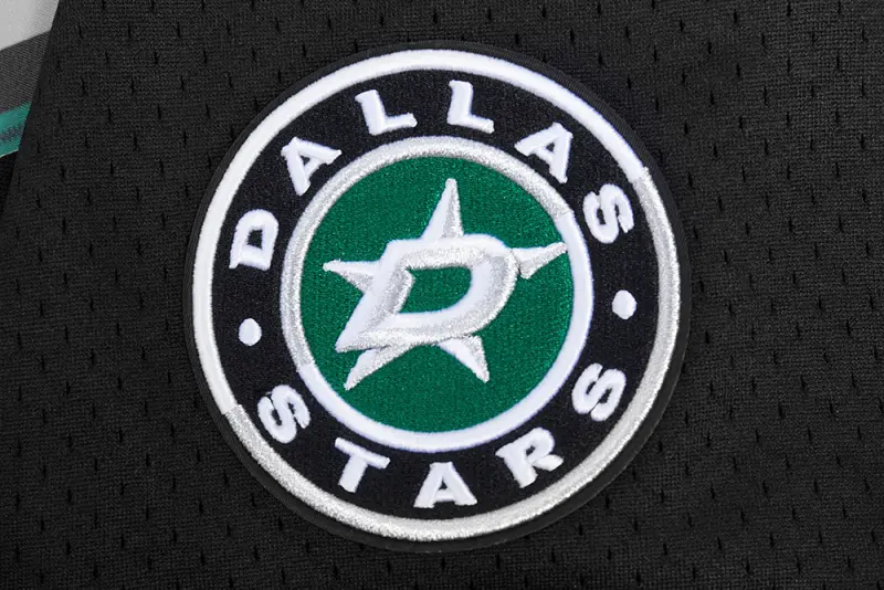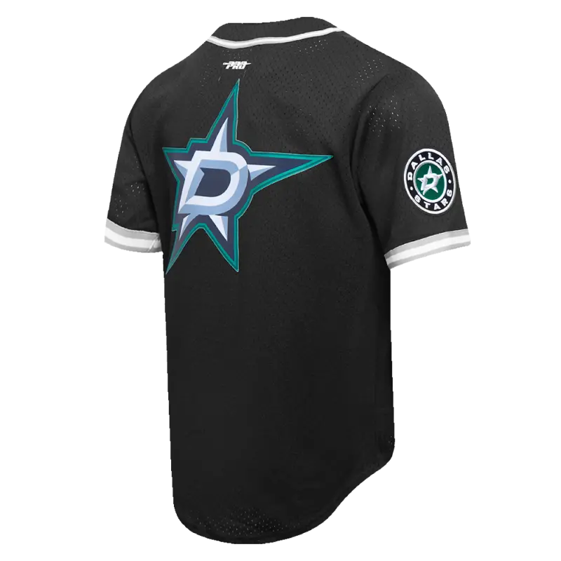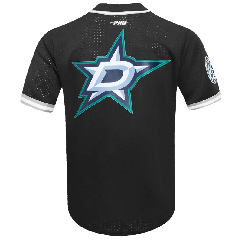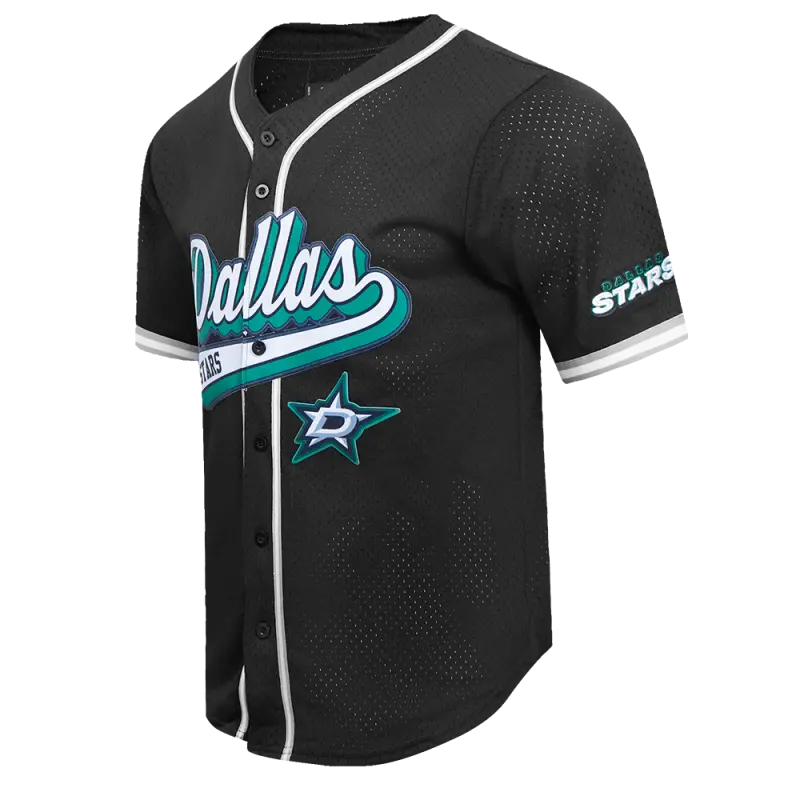 NHL DALLAS STARS SCRIPT TAIL MEN’S MESH BUTTON DOWN SHIRT (BLACK\/GRAY)