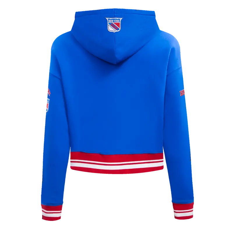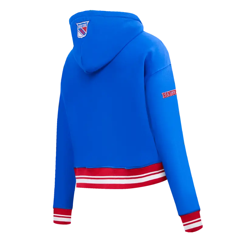 NHL NEW YORK RANGERS RETRO CLASSIC WOMEN’S RIB CROPPED PULLOVER HOODIE (ROYAL BLUE\/RED)