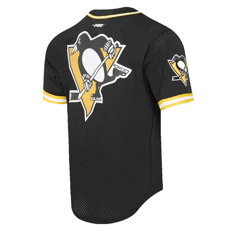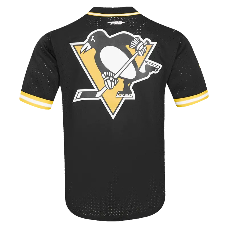 NHL PITTSBURGH PENGUINS CLASSIC MEN’S MESH BUTTON DOWN JERSEY (BLACK\/YELLOW)