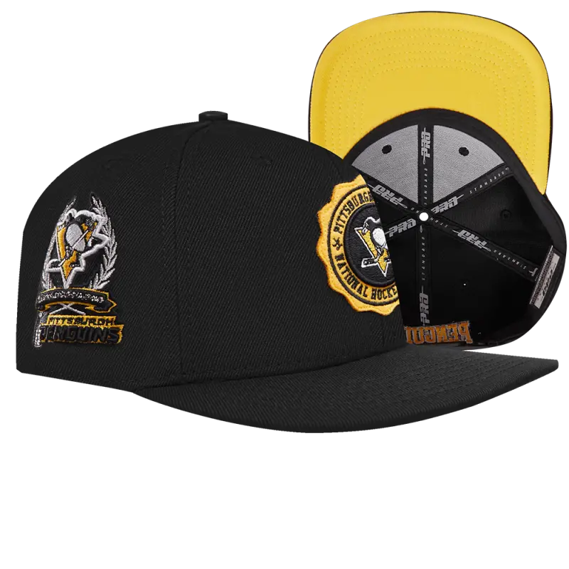 NHL PITTSBURGH PENGUINS CREST EMBLEM WOOL SNAPBACK HAT (BLACK)