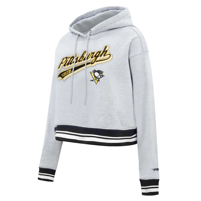 Home / Shop / Pittsburgh Penguins / NHL PITTSBURGH PENGUINS SCRIPT TAIL WOMEN’S RIB FLEECE CROPPED PULLOVER HOODIE (HEATHER GRAY\/BLACK)