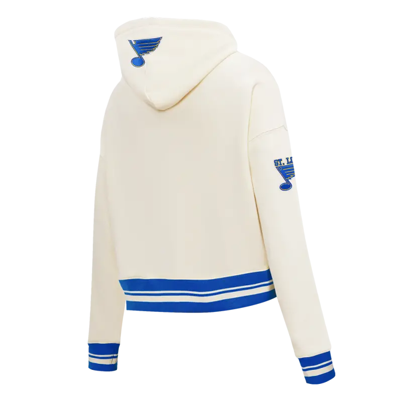The Pro Standard Premium NHL St. Louis Blues Retro Classic WoMen’s Rib Cropped PO Hoodie (Eggshell/Royal Blue)