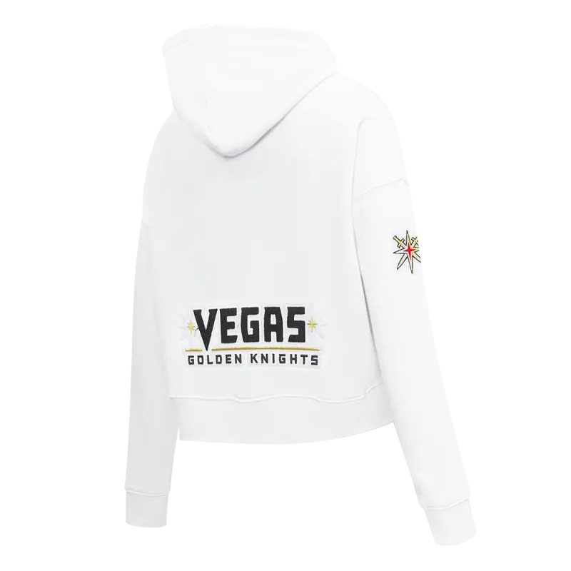 NHL VEGAS GOLDEN KNIGHTS CLASSIC WOMEN’S FLEECE CROPPED PULLOVER HOODIE (WHITE)