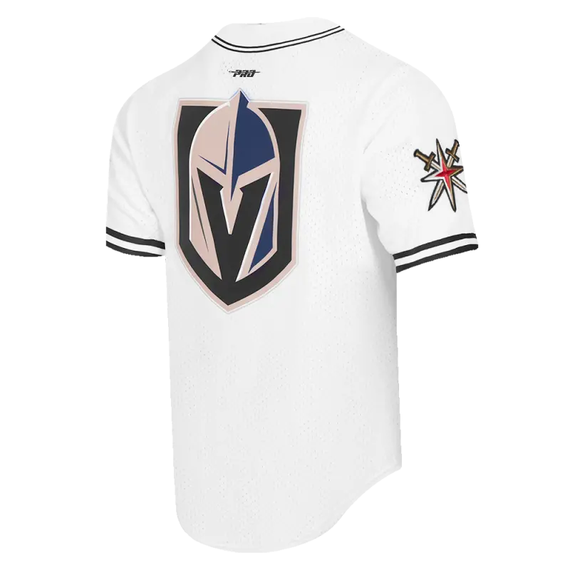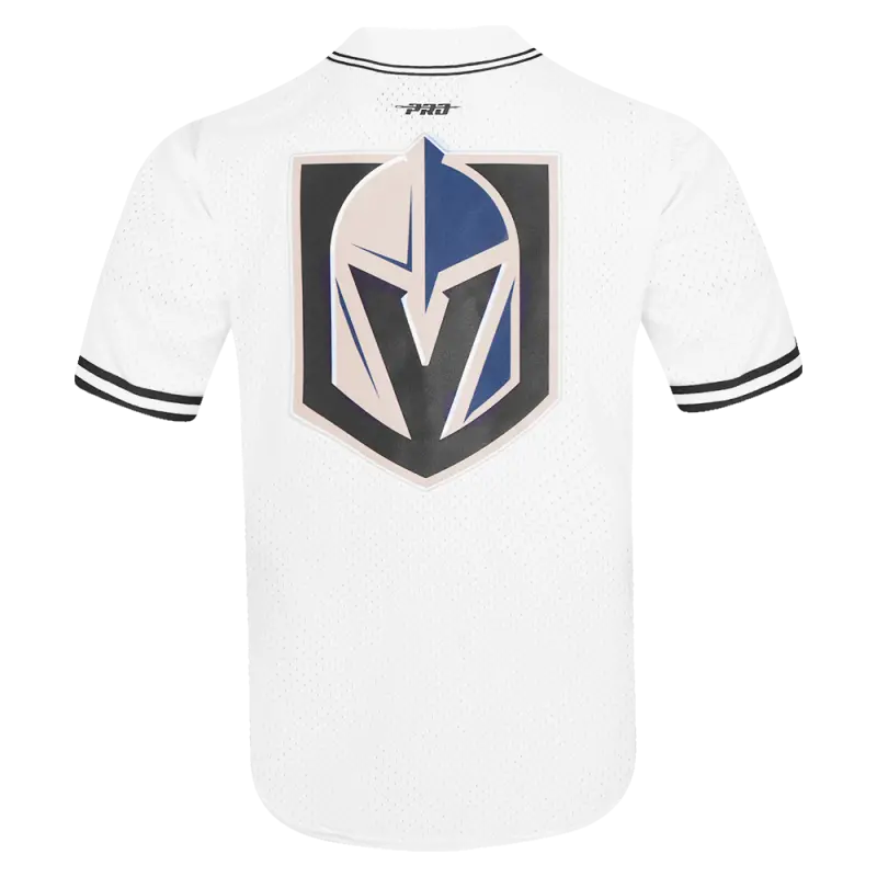 NHL VEGAS GOLDEN KNIGHTS SCRIPT TAIL MEN’S MESH BUTTON DOWN SHIRT (WHITE\/BLACK\/WHITE)